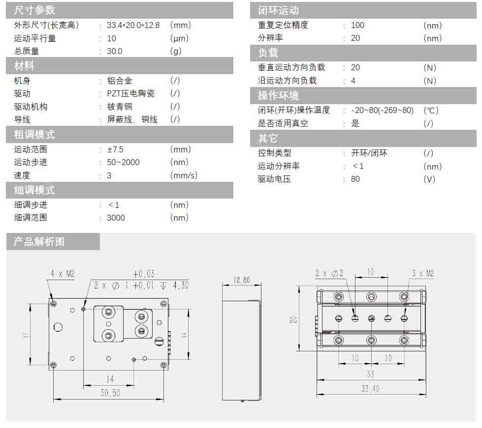 線性壓電位移臺-MF系列 MF30-30A