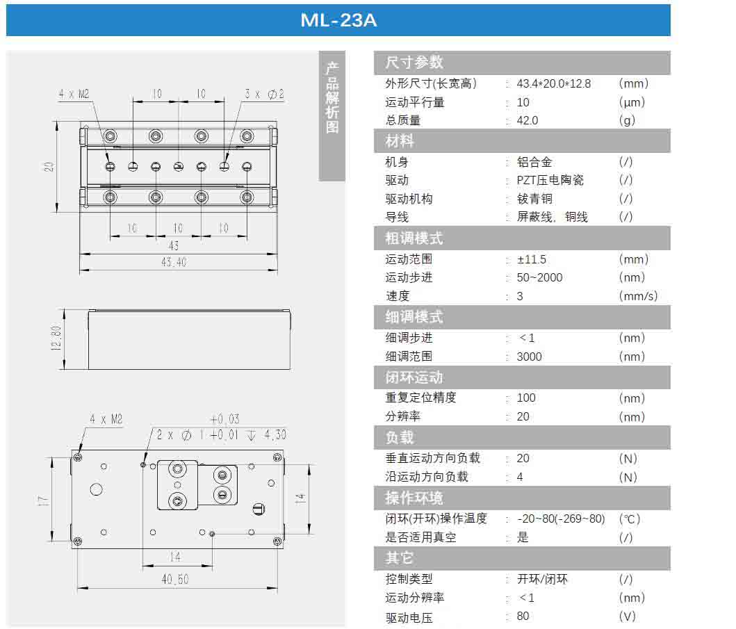 線性壓電位移臺-ML系列 ML-23A技術(shù)參數(shù)