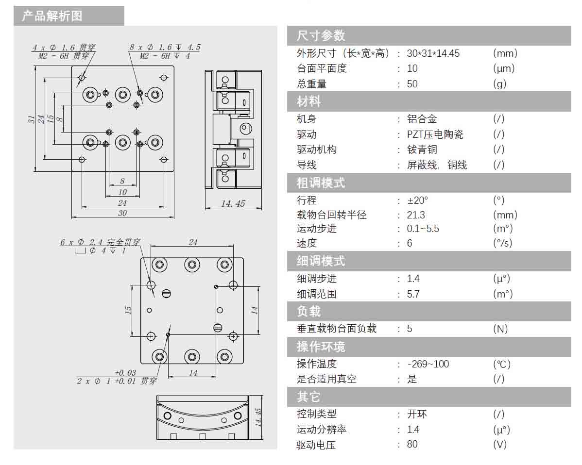 可以360度旋轉(zhuǎn)平面,由高分辨率壓電馬達(dá)驅(qū)動。提供開環(huán)和閉環(huán)版本。
